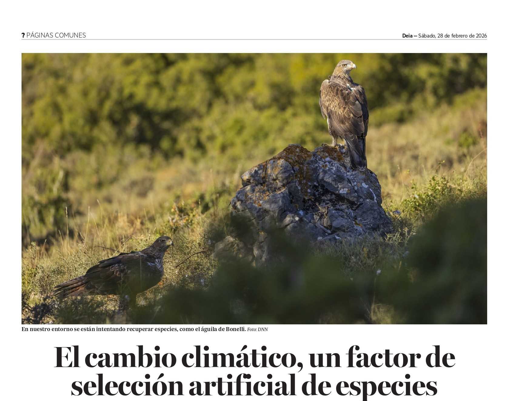 11 MAR 2026 El cambio climático, un factor de selección artificial de especies Noticias 48 El decano del COBE, José Mari Blanco, es entrevistado en un reportaje del Deia sobre el efecto del cambio climático en la distribución de las especies y en los ecosistemas Ver +